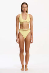 Defined by sculptural detail and modern sensibility, the Imali Tank Top in Dandelion introduces refined texture to swim and summer wardrobes. Featuring an artful cut-out lace detail, this fully lined swim top offers confident coverage and a contoured fit‚ perfect for elevated resort styling or statement layering. Pair back with the Imali Maxi Skirt for the perfect outfit.