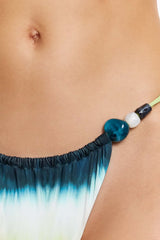 The Karah Tie Brief in Petrol Gradient reimagines classic swimwear with a sculptural aesthetic. Defined by its unique print, this bikini bottom features a tie side and is finished with resin bead accents. Fully lined and crafted from a premium knit, it delivers both comfort and statement appeal for elevated resort styling.