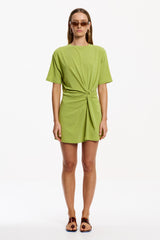 The Carrey Mini Dress in Apple redefines the classic T-shirt dress with sculptural sophistication. Crafted in a vibrant textured knit jersey, this mini dress features an architectural asymmetric waist twist that artfully frames the silhouette. The lined skirt ensures a smooth finish, while a pull-on design offers effortless wear-perfect for modern event dressing and elevated daytime occasions.