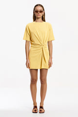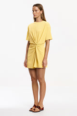 The Carrey Mini Dress in Dandelion redefines the classic T-shirt dress with sculptural sophistication. Crafted in a vibrant textured knit jersey, this mini dress features an architectural asymmetric waist twist that artfully frames the silhouette. The lined skirt ensures a smooth finish, while a pull-on design offers effortless wear - perfect for modern event dressing and elevated daytime occasions.