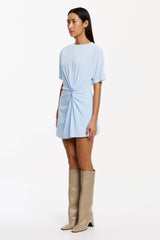 The Carrey Mini Dress in Powder redefines the classic T-shirt dress with sculptural sophistication. Crafted in a vibrant textured knit jersey, this mini dress features an architectural asymmetric waist twist that artfully frames the silhouette. The lined skirt ensures a smooth finish, while a pull-on design offers effortless wear—perfect for modern event dressing and elevated daytime occasions.