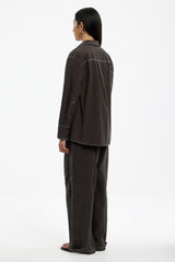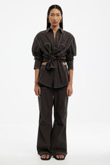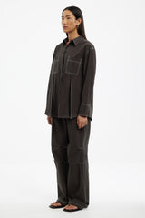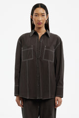 The Charley Shirt in Espresso is a relaxed wardrobe staple with a utilitarian twist. Crafted from crisp cotton, this unlined style features a functional button front, chest pockets, and front splits that can be tied at the waist for a styled finish. Contrast topstitching adds a refined touch to this easy, off-duty silhouette.