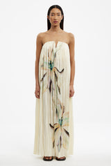 Chic and effortless, the Lilian Maxi Dress in Cream Lilium is designed for relaxed celebrations. Featuring a structured strapless bodice and flowing pleated fabrication, this style skims the body in all the right places. The placement floral print and soft crinkle texture add dimension making it perfect for long lunches, garden weddings or summer evenings.