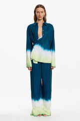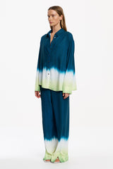 - Center front button placket; can be cinched at waist with a rouleau loop
